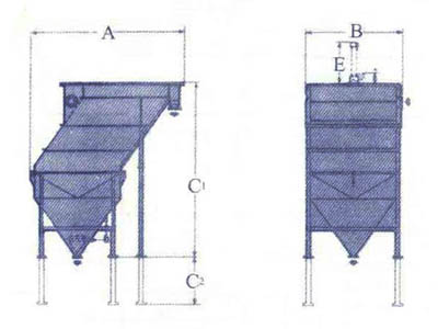 整機包括上部箱體和下部錐體。上部箱體內有斜置的斜板組群,斜板組群由若幹個相互獨立的斜板單元構成,處理物料由斜板單元下端兩側進入,斜板組群上方有一貫通全長的溢流槽,槽底開有節流孔,造成外排溢流的水力背壓,保證各斜板單元載荷均勻,防止徑向紊流。側向半逆流的給料方式,能使下沉的固體顆粒、上行的澄清液各行其道,互不幹擾,沿斜板下滑的濃泥進入下部錐體後,壓縮脫水,並靠重力外排,亦可借助於機械振動使濃泥順利外排。
